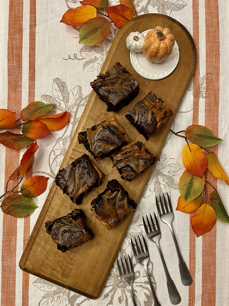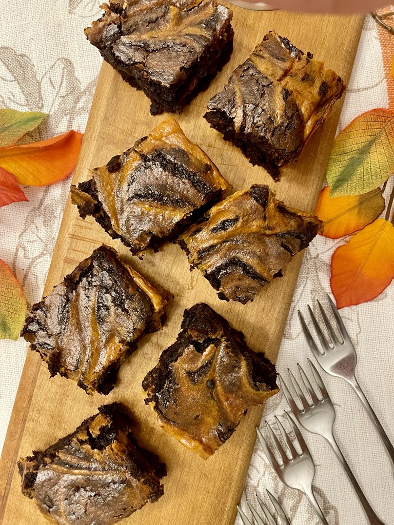 So, pumpkin cream cheese brownies are shared here today.