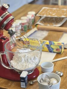 - Gather your cooled houses, sprinkles and royal icing to begin putting houses together.